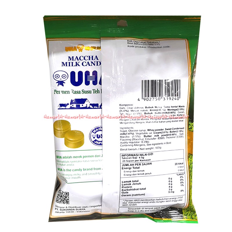 Uha 103gr Macha Milk Candy Permen Rasa Susu Teh Hijau Stroberi Mint Permen Susu Manis Matcha Strawberry U.H.A