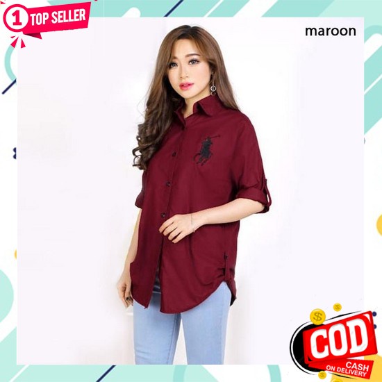 Ukfa -Mod Baju Kantor Wanita Lengan Panjang Polos Basic Kekinian Hem Kemeja Cewek Korean Style Terba. Arena - Ladies 3/4 Sleeve Shirt / Kemeja Kerja Wanita