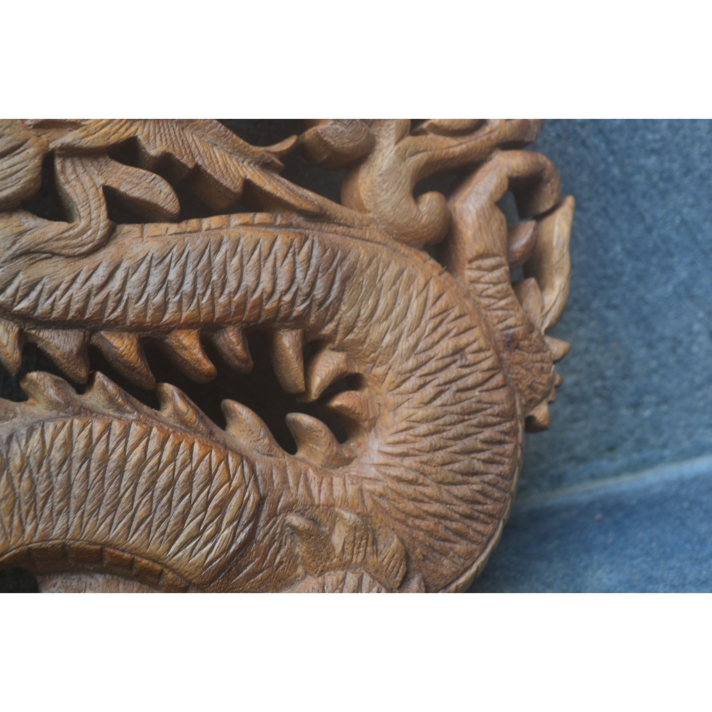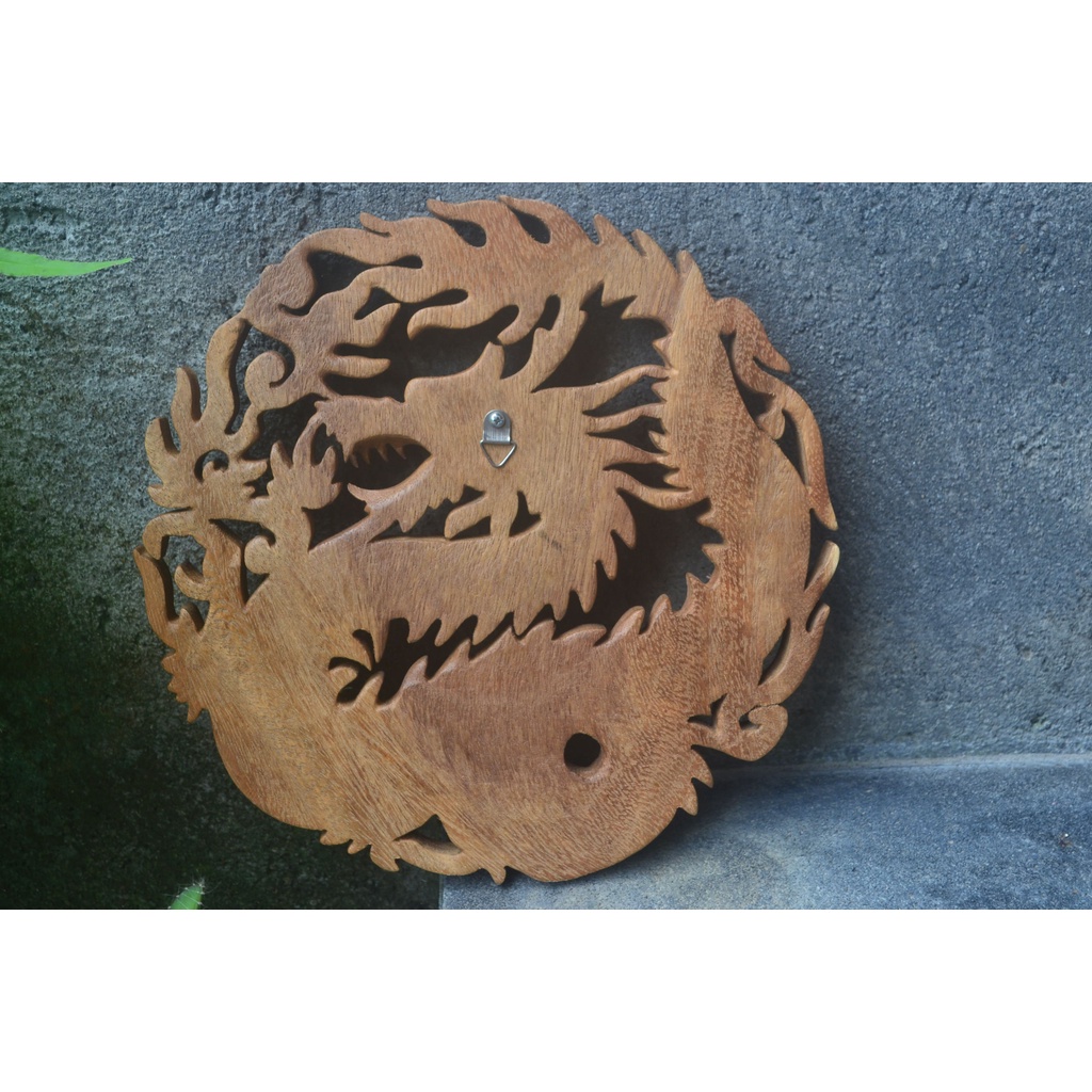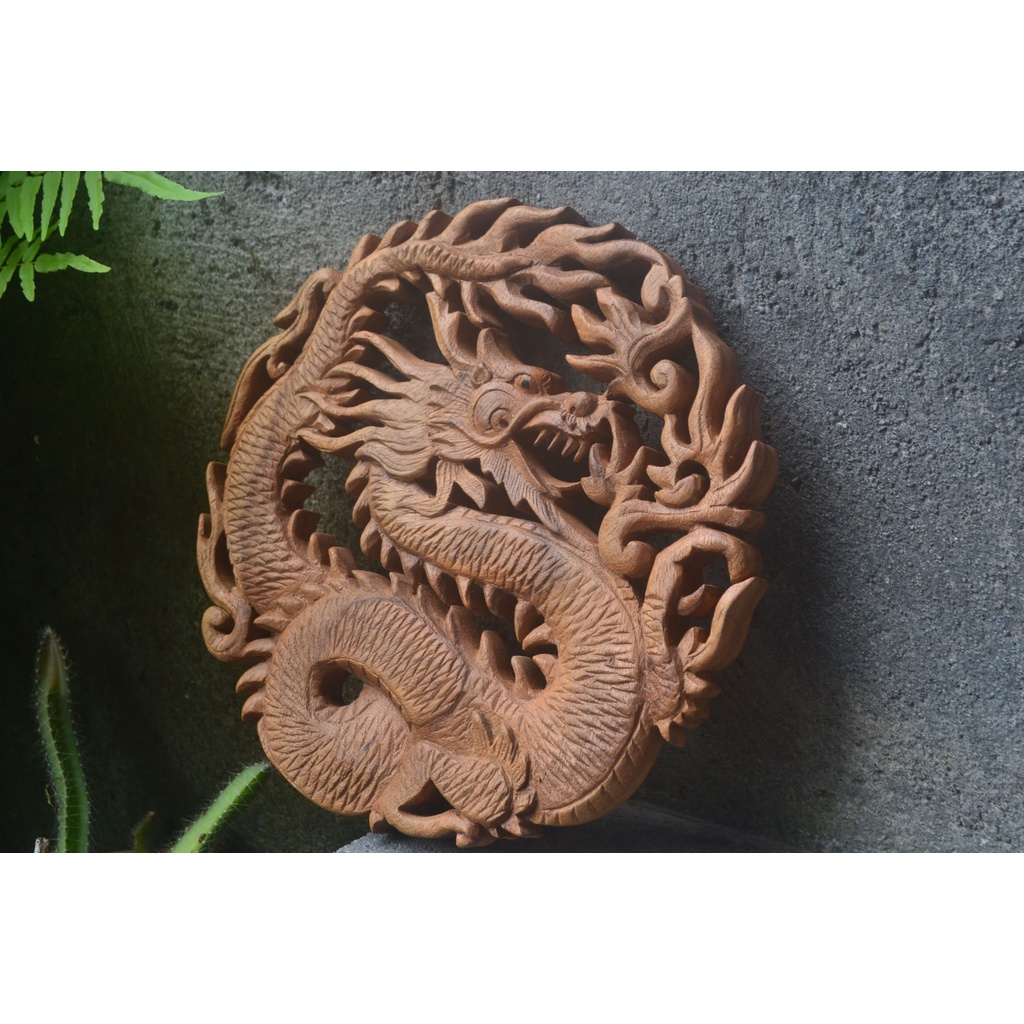 Ukiran Bali Hiasan Dinding Kayu Motif Naga 25 cm