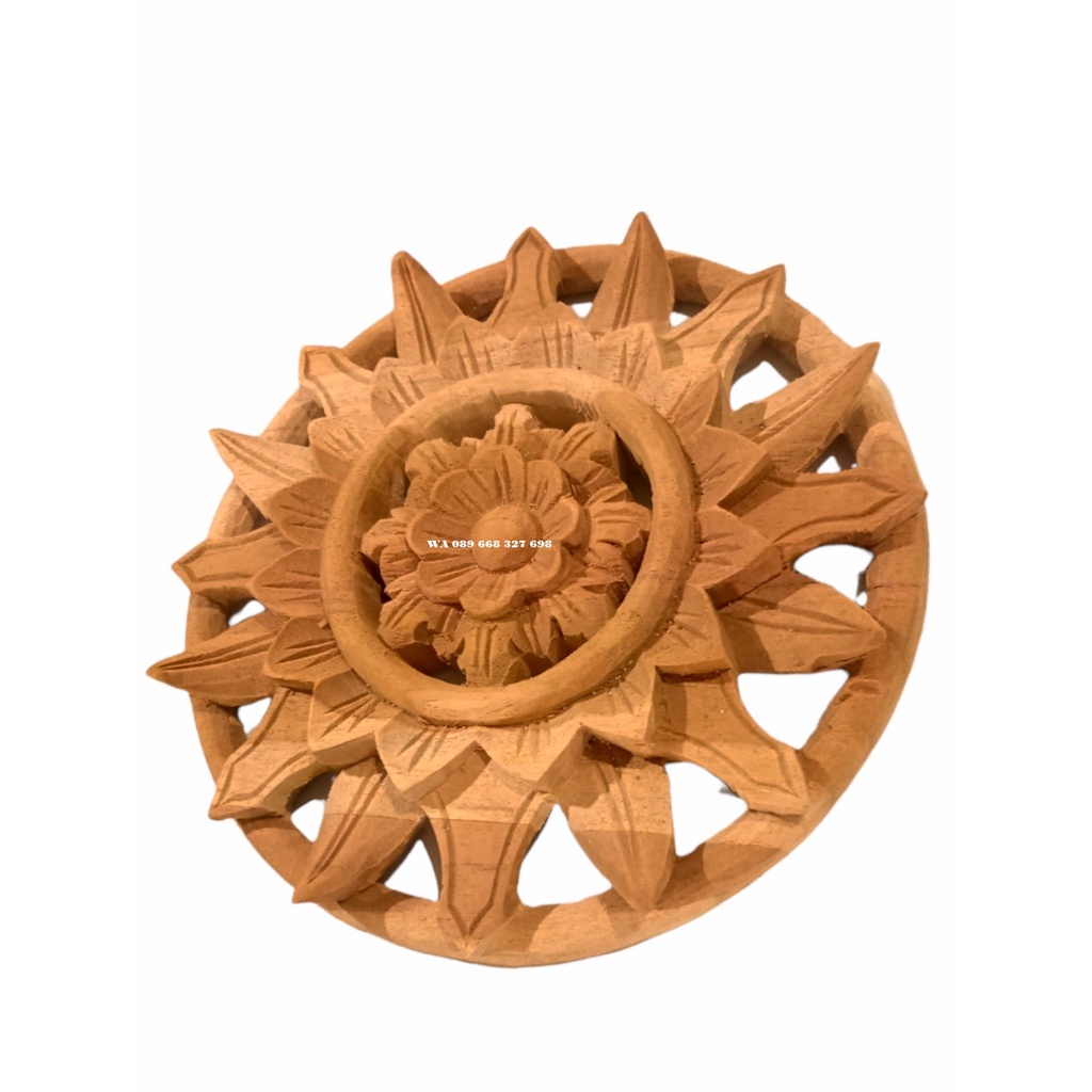 Ukiran Bundar Ornamen Tempel Pintu Kusen Lemari Tembok Hiasan Rumah Kayu Jati Diameter 20 cm