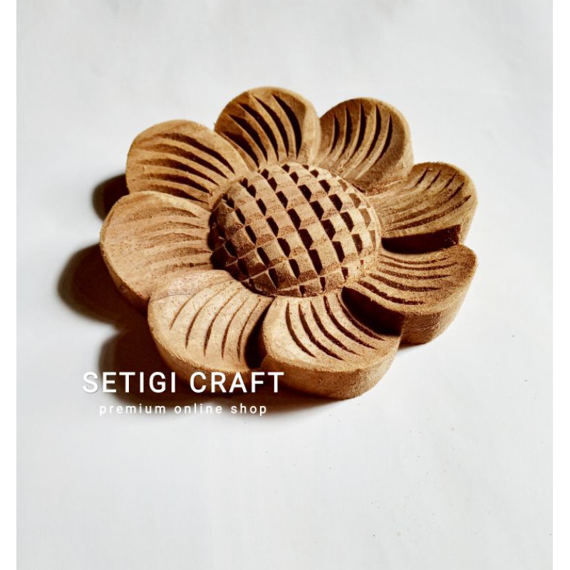 Ukiran Tempel Bunga Matahari Kayu Jati Penghias Mebel D 10 cm