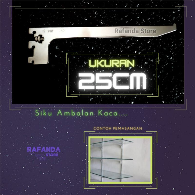 Ukuran 25cm ambalan kaca siku kaca stainless atau braket penyangga rak kaca susun
