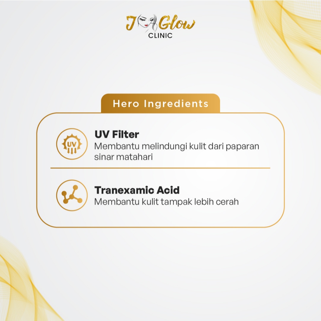 JGlow Clinic - Ultima Sunscreen Netto 12,5gr Tekstur Ringan Mengandung Tranexamic Acid Semua Jenis Kulit