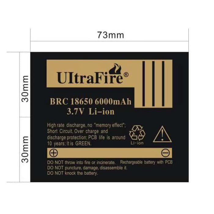 UltraFire Rechargeable for LED Flashlight 3.7V 6000mAh with Button