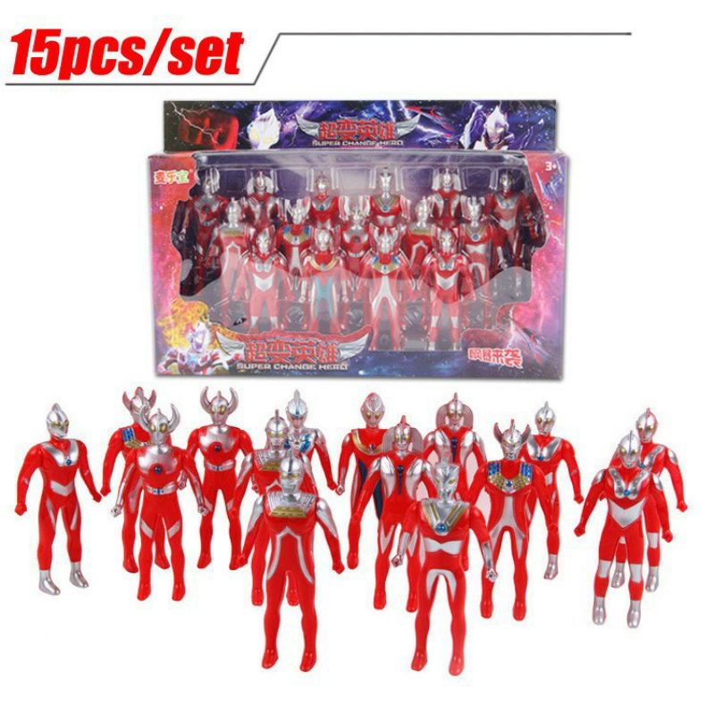 Ultramen mainan set isi 15pcs mainan robot ultraman 1set isi 15pcs cocok untuk kado ulang tahun anak-anak
