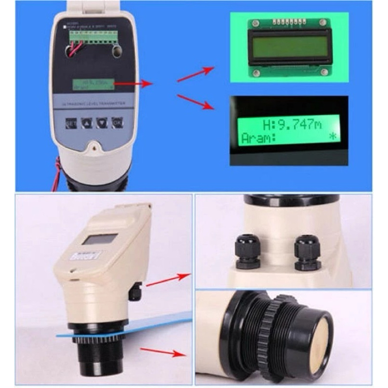 Ultrasonic Level Meter 4-20mA 24V 0-10m Water Flow Tester Gauge DC24V