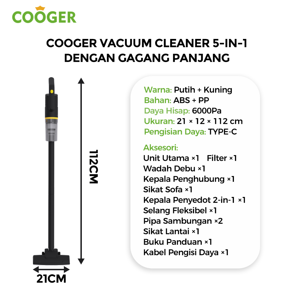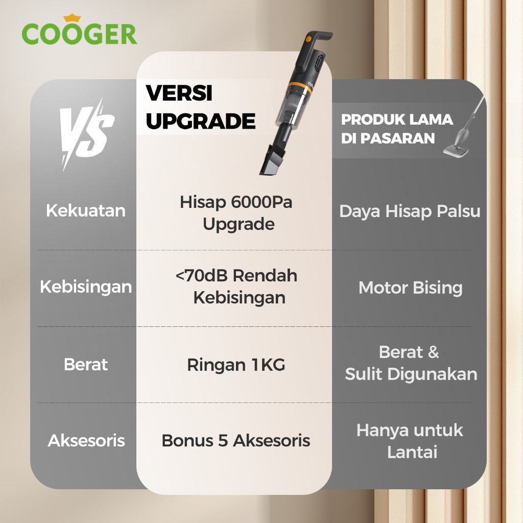 [FREE FILTER] COOGER Vacuum Cleaner Portable 5IN1 Penyedot Debu Hisap Kuat 6000Pa Cordless Tanpa Kabel Serbaguna Pembersih Debu Rumah & Mobil