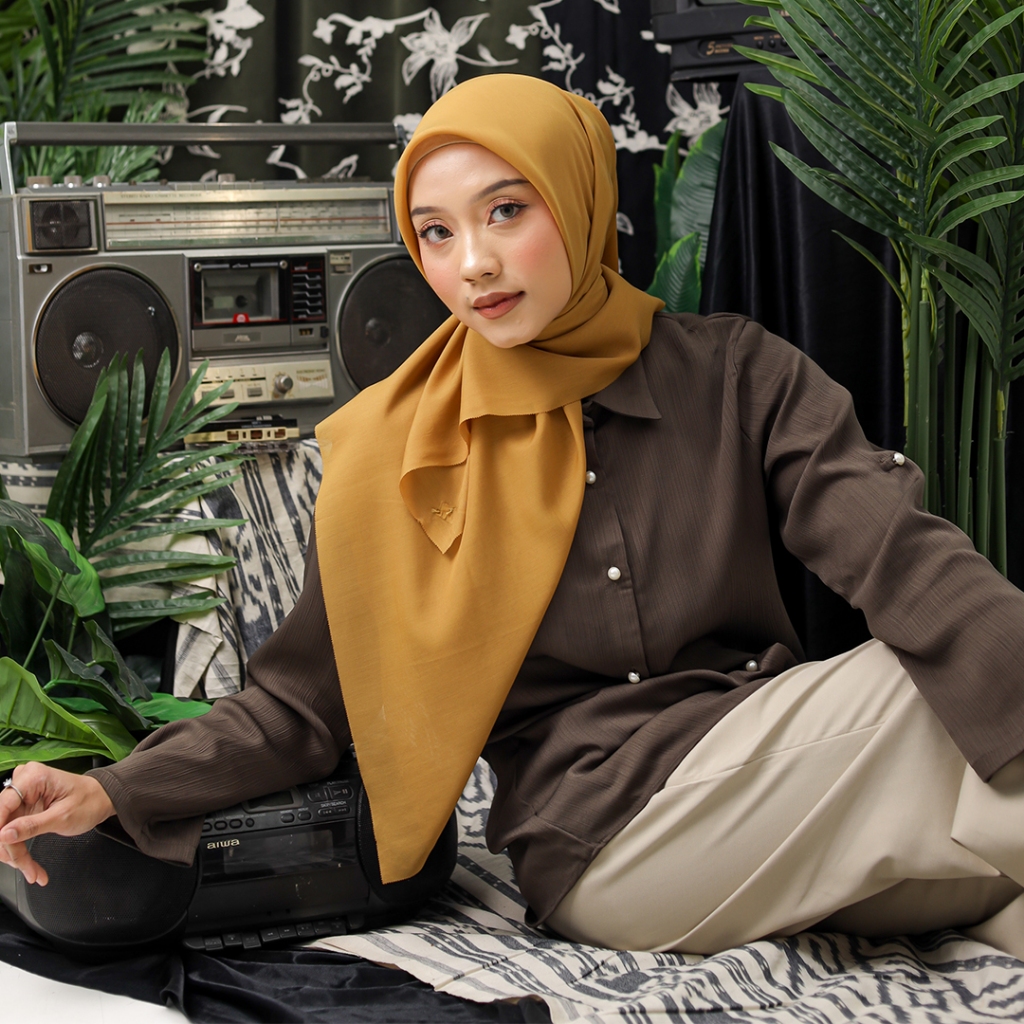 Umama Scarf - Kerudung Polos Jilbab Segi Empat Hijab Daily Paris Olive Laser Cut