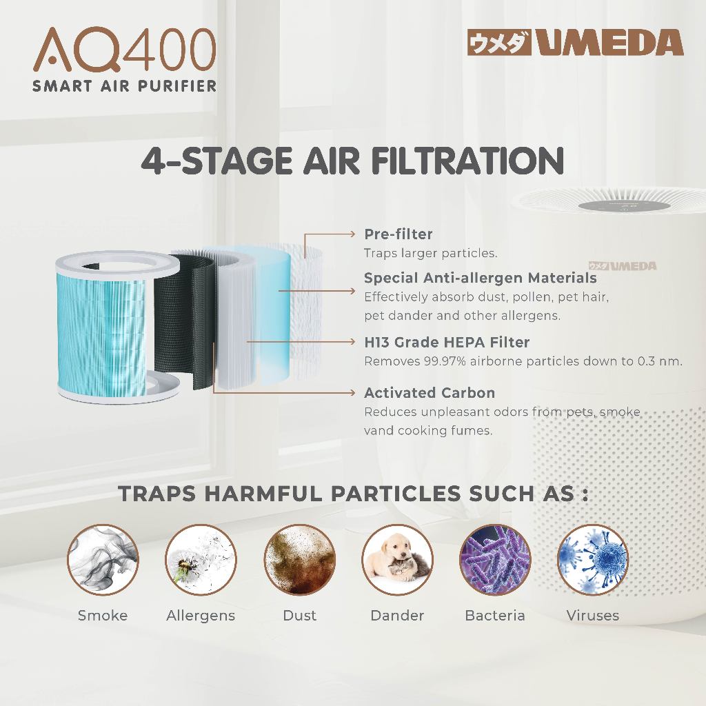 Umeda AQ400 Smart Air Purifier H13 HEPA Filter UV-C & ION FUNCTION
