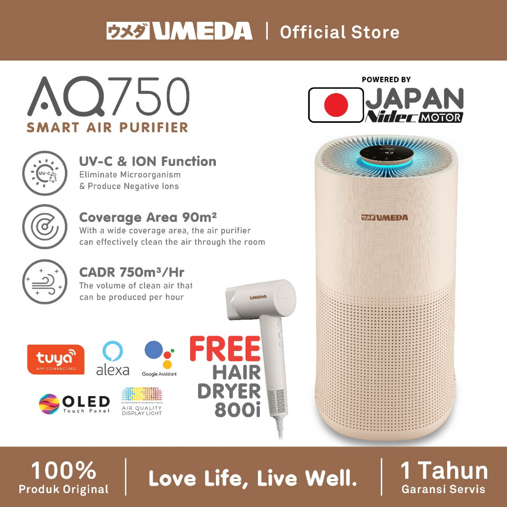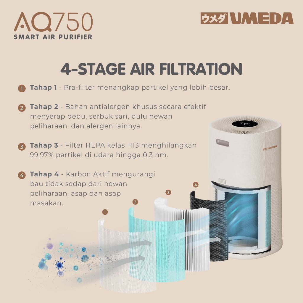 Umeda AQ750 Smart Air Purifier H13 HEPA Filter UV-C & ION FUNCTION