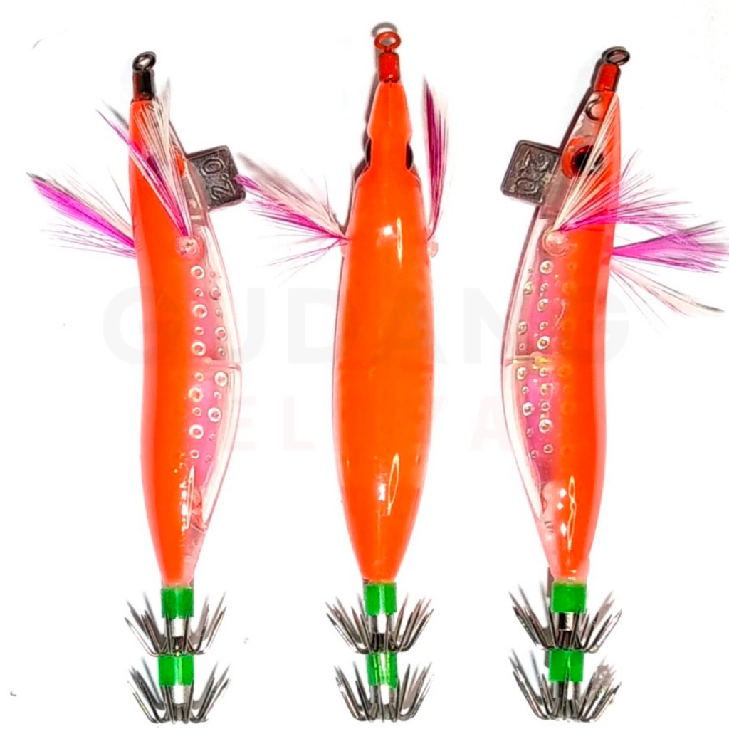Umpan Pancing Cumi Bentuk Udang - Udangan merk Seawood Shrimp Squid Jig 2.0 Superline *** NON PREMIUM*** - Harga 1 bungkus isi 5 biji