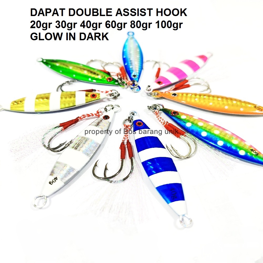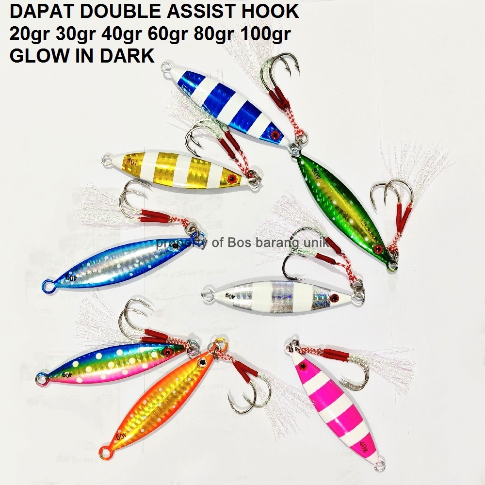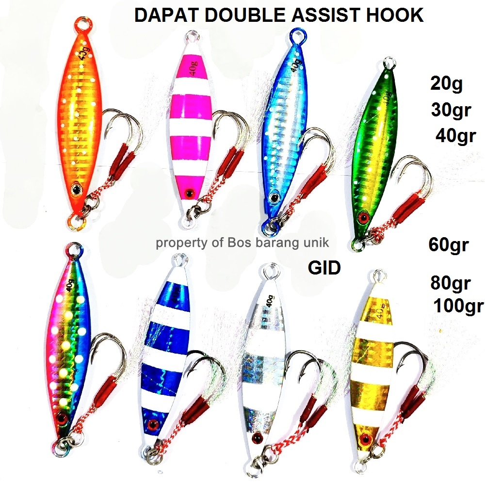 Umpan Pancing Metal Jig GP 20gr 30 gr 40gram 60 gram 80g 100 gr Dapat Double Assist Hook GID jigging