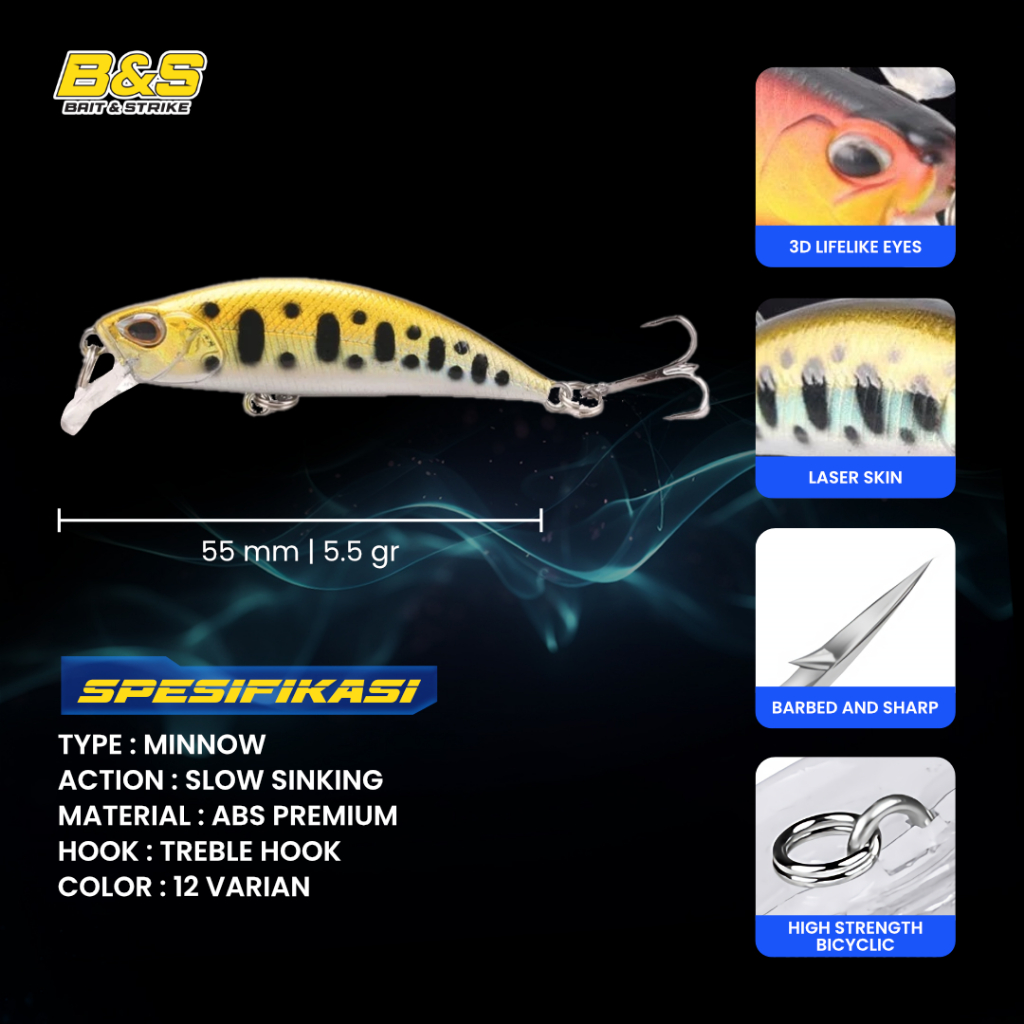 Umpan pancing Lure Minnow Slow Sinking 5G/5,5cm lure Minnow Ultralight MN005