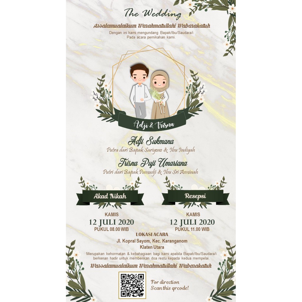 Undangan Digital Gambar Rustik Daun Kering Karakter Lucu Marble Rustic Wedding JPG JPEG Full Layar