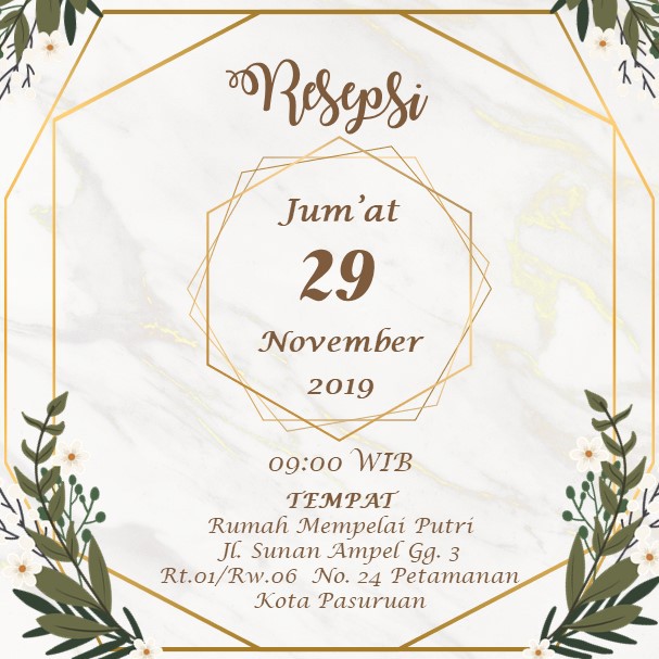 Undangan Digital Pernikahan Video Rustik Daun Kering Karakter Lucu Marble Rustic Wedding Invitation