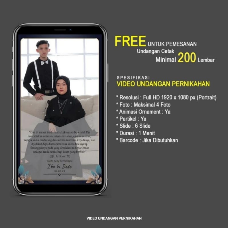 [50 Pcs] Undangan Pernikahan Aestetic | Motif Bunga | Free Plastik, Label, Thanks Card dan Video Undangan Digital