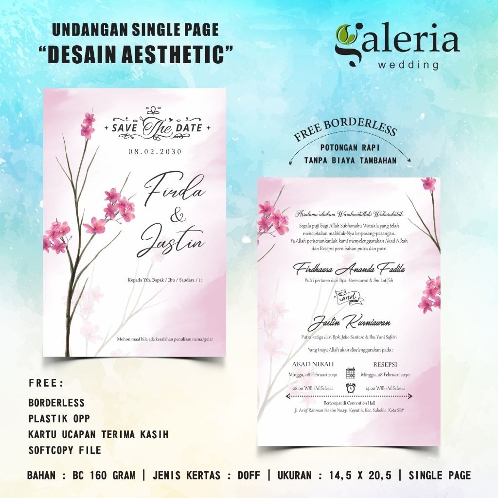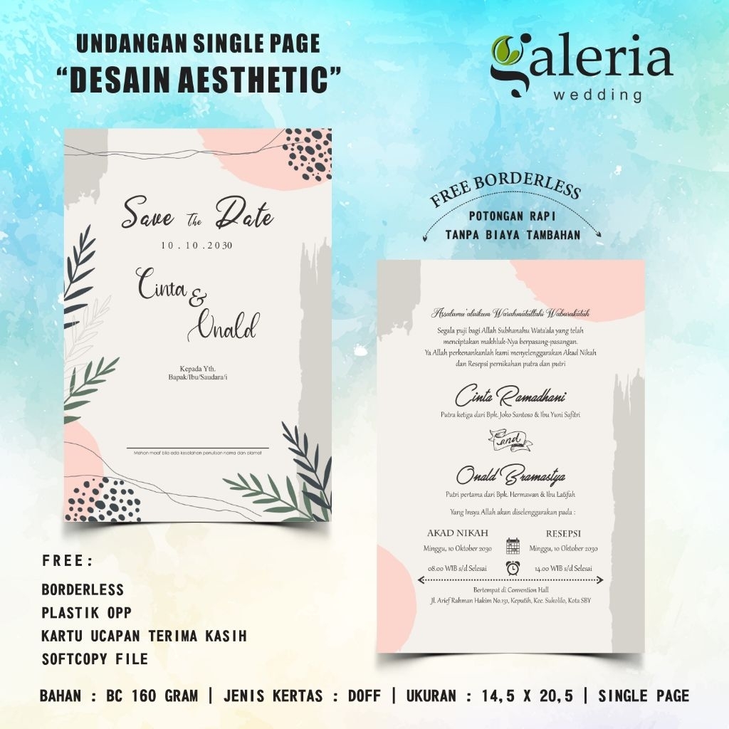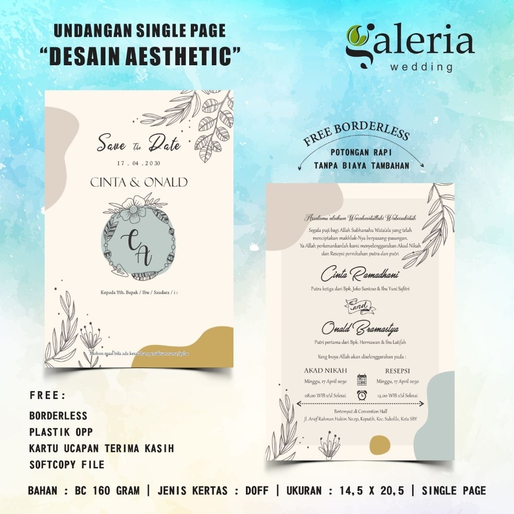 Undangan Pernikahan Aesthetic / Undangan Satu Lembar / Undangan Walimatul / Undangan Akad Nikah / Series SL