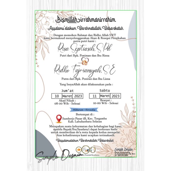 Undangan Pernikahan Murah 1 Lembar Timbal Balik