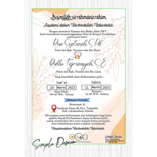 Undangan Pernikahan Murah 1 Lembar Timbal Balik