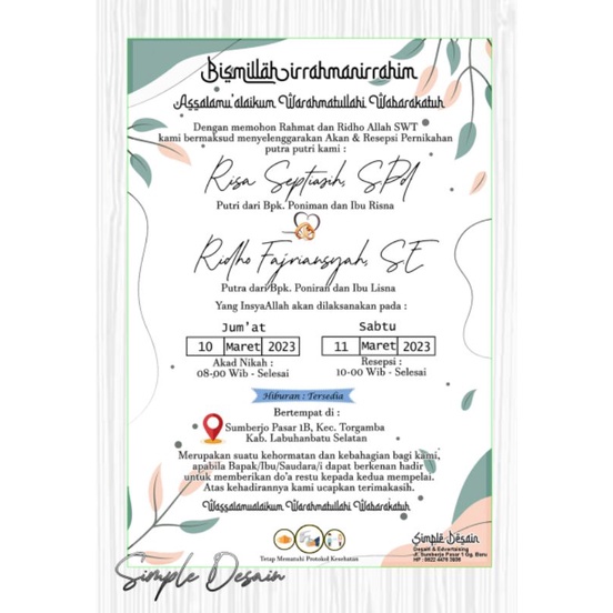 Undangan Pernikahan Murah 1 Lembar Timbal Balik