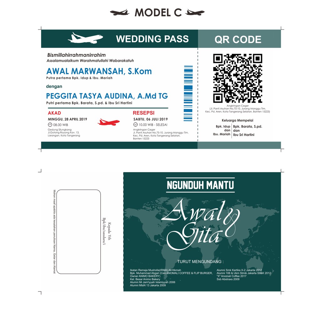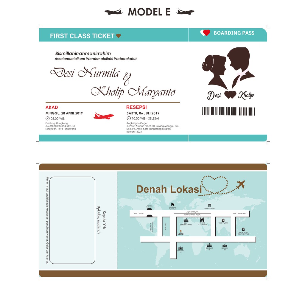 Undangan Pernikahan Tema Boarding Card bisa Custom Dsain Apa saja / Free Design