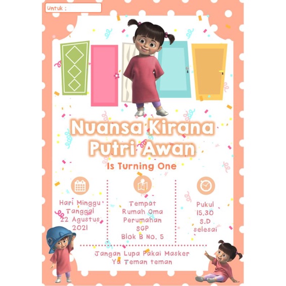 Undangan Ulang Tahun Tema Monster Inc - Boo (include Plastik)