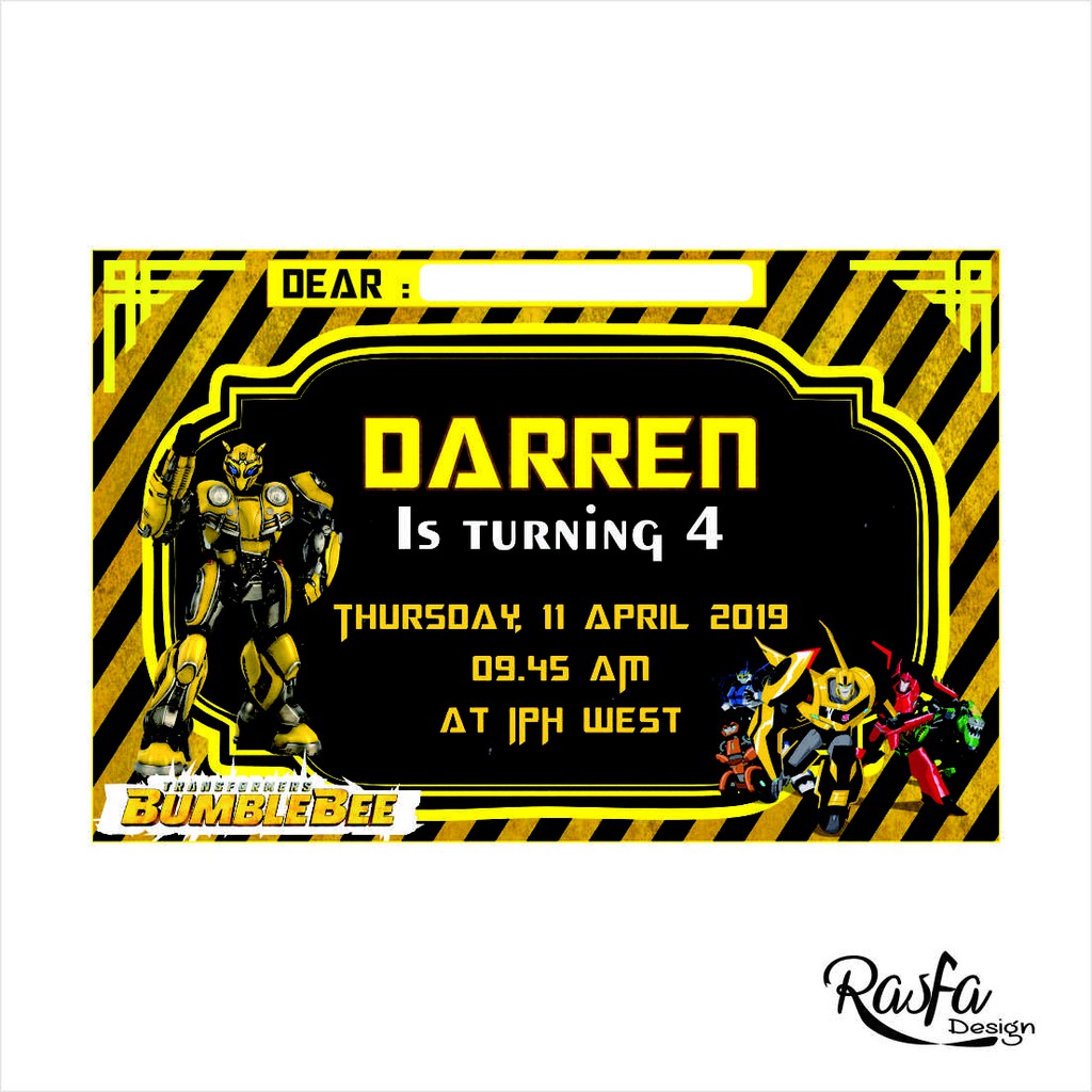 Undangan Ultah Darren Bumblebee | Stiker Ultah Bumblebee | Stiker Bumblebee | Label ultah Bumblebee
