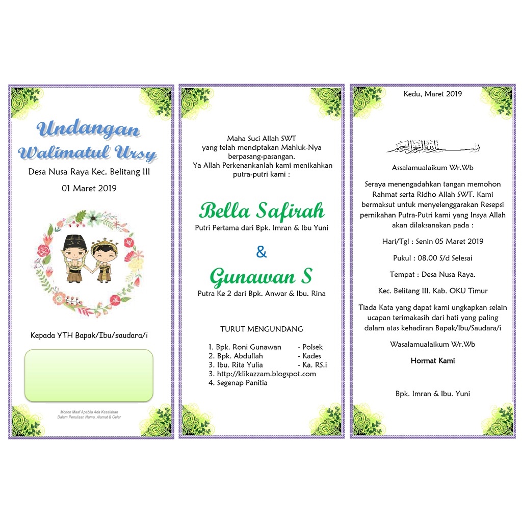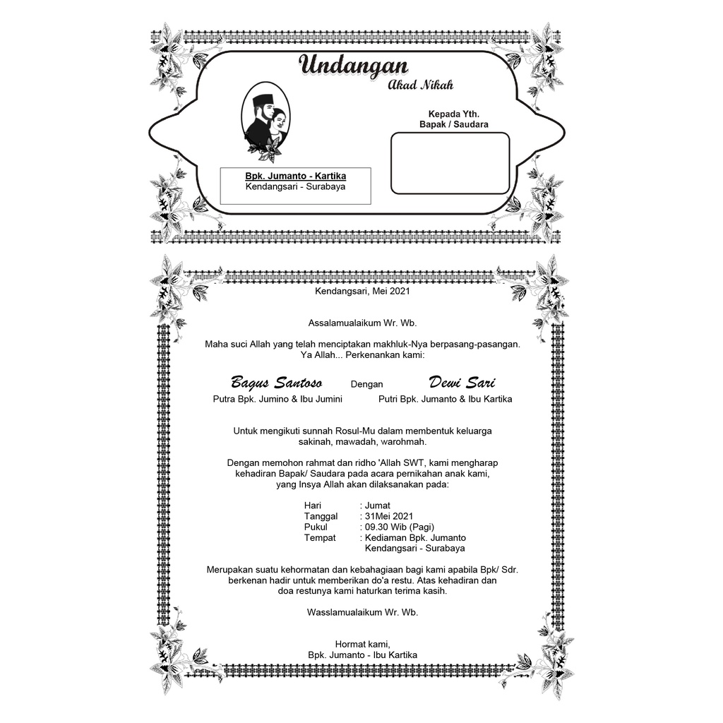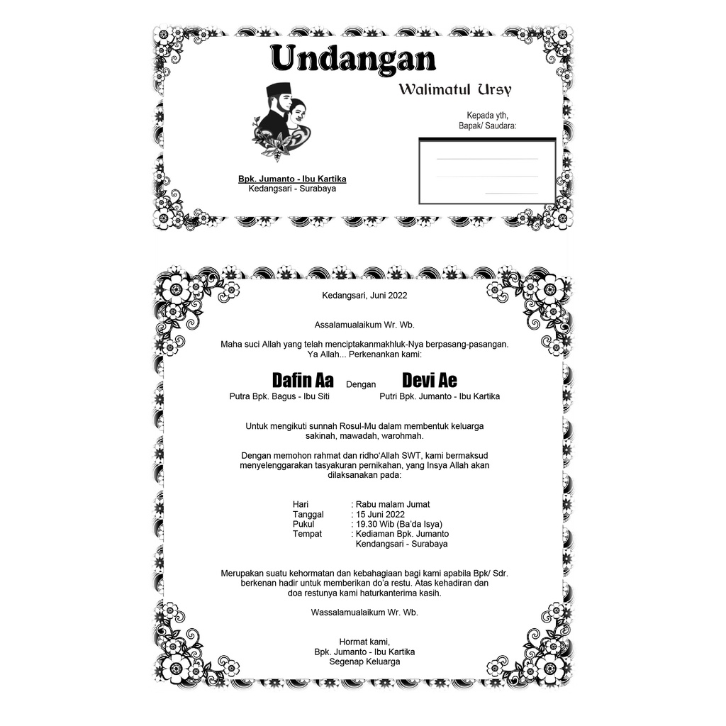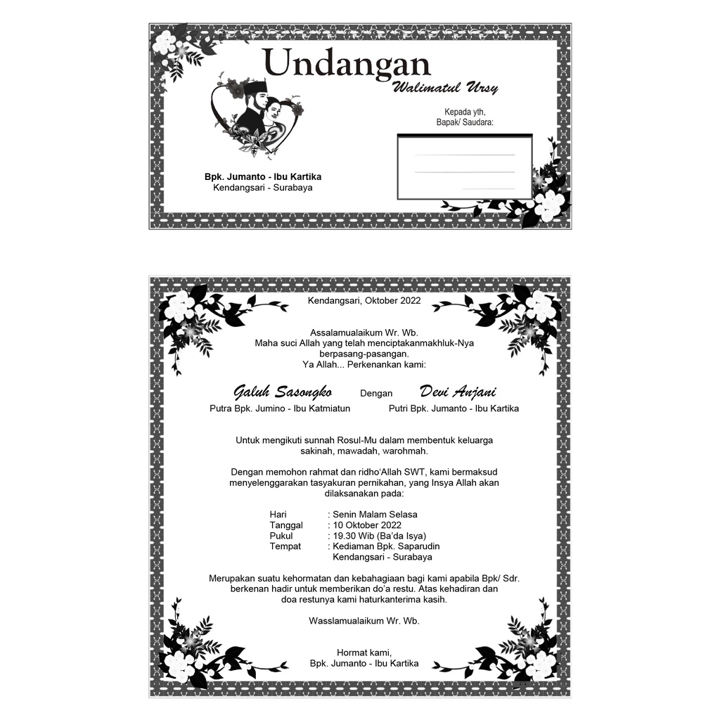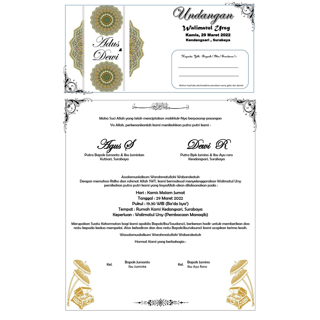 Undangan Walimatul Ursy / Walimah / Selamatan / Tahlil