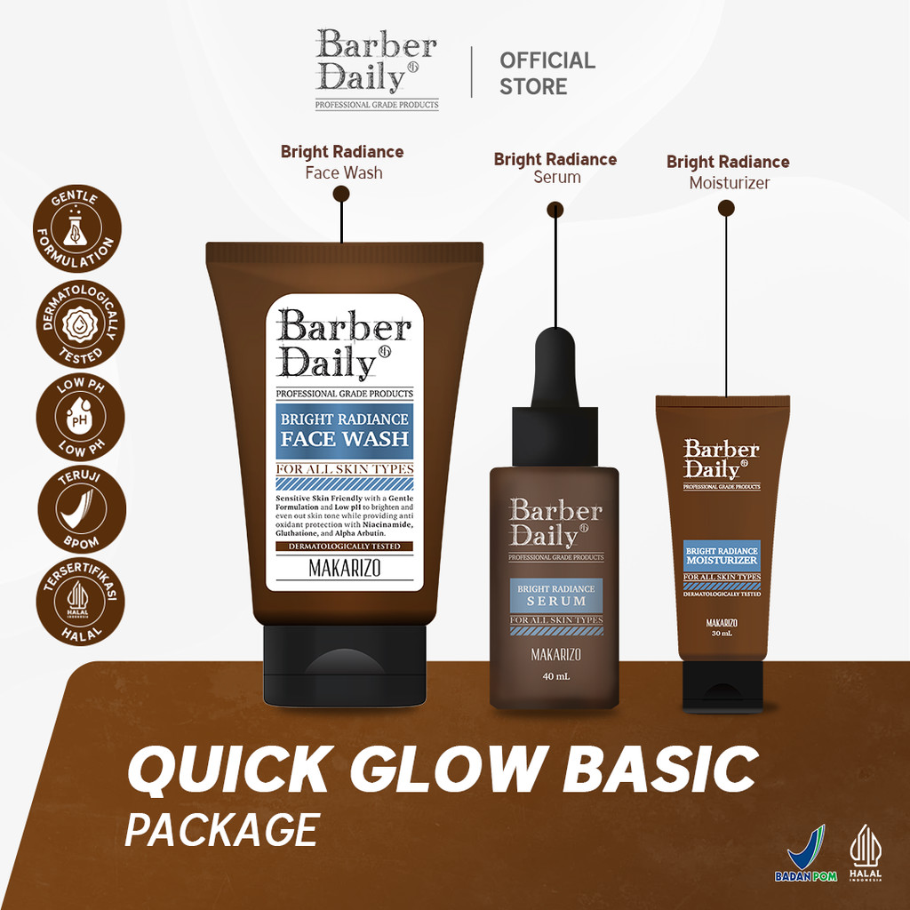 Barber Daily Quick Glow Basic– Skincare Pria Cerah (Face Wash, Serum & Moisturizer)