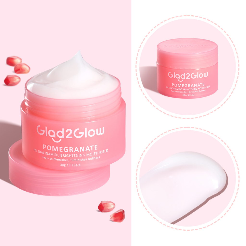 GLAD2GLOW Pomegranate 5% Niacinamide Brightening Moisturizer | Whitening Glowing Moisture Gel Day & Night Cream Pelembab Wajah