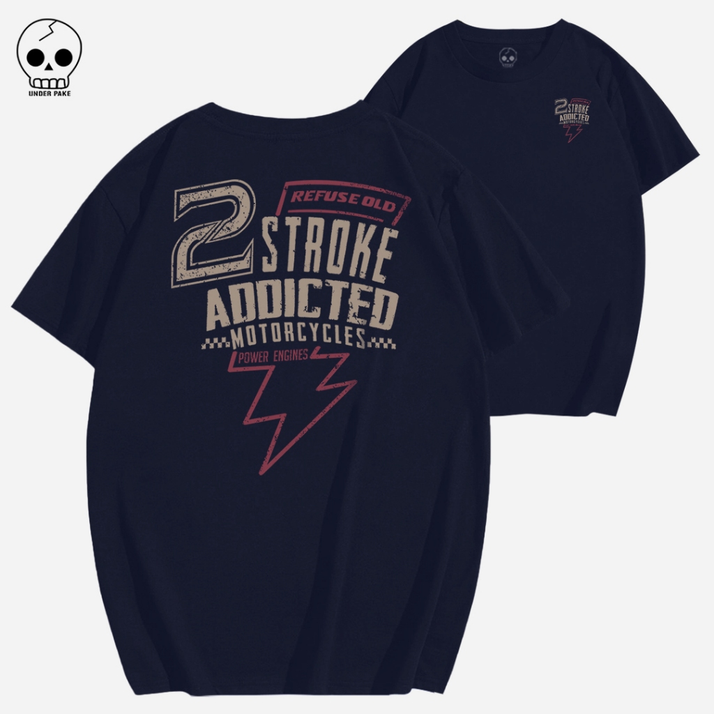 Kaos Pria Otomotif 2 Stroke Addicted Premium Eksklusif | Tshirt Otomotif Motor Classic | Cotton Combed 24s & Sablon Plastisol Tahan Lama | Baju Handmade Desain Manual