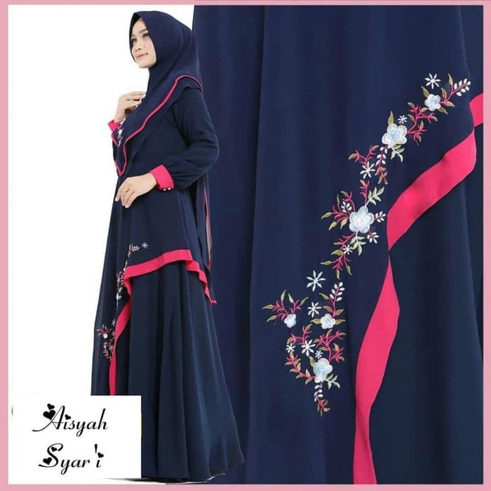 Unik Baju Gamis Wanita Terbaru - Juliet Dress - Baju Gamis Hijab Wanita - Navy terbaik