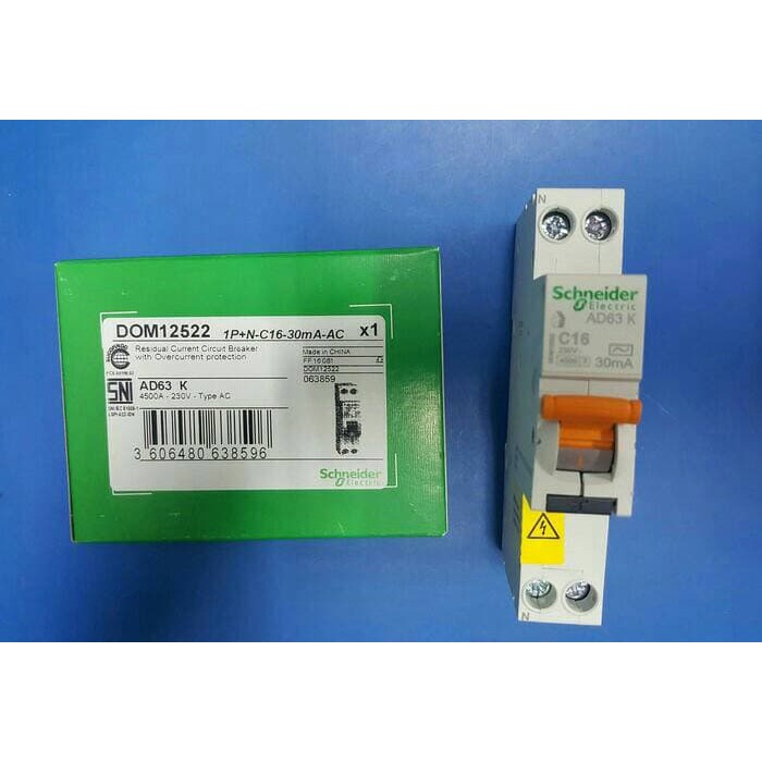Unique RCBO slim domae 1P+N 16A 30MA/RCBO slim domae 1P +N 16A 30MA schneider