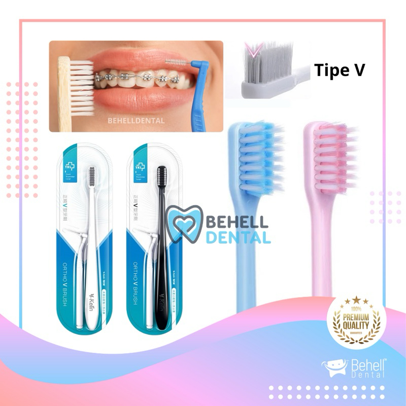 Sikat Gigi Behel V Shaped Dengan Tutup BONUS INTERDENTAL BENGKOK BRUSH Orthodontic - Tooth Brush Dr Smith Dr Smile Tengah Cekung V Trim Shape - Toothbrush Ortho Free Sikat Sela Celah Tusuk Floss Flossing - Pembersih Penghilang Plak Gigi [R1]