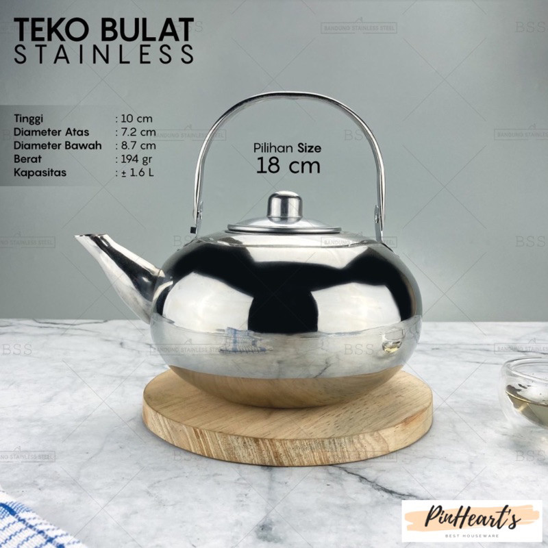 HSO - TEKO STAINLESS STEEL BULAT / TEAPOT AIR PANAS TEH STAINLESS STEEL ANTI KARAT KAPASITAS BESAR BANYAK | CERET STAINLESS STEEL BULAT