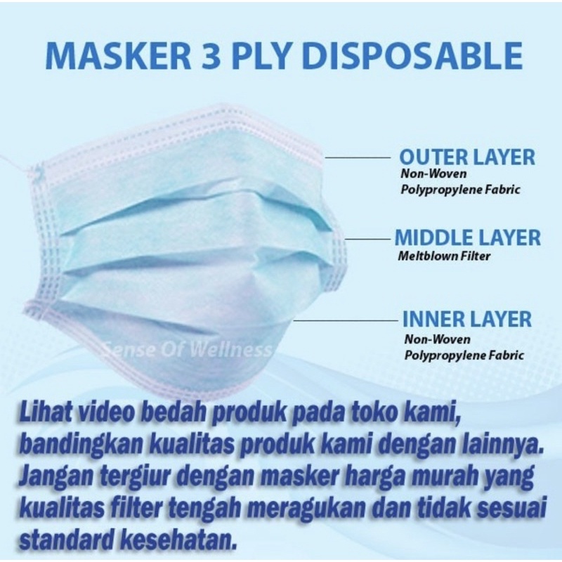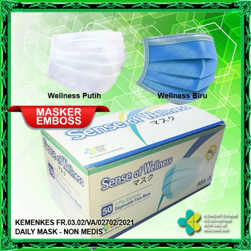 Masker 3 Ply 3Ply Earloop Disposable Face Mask Daily Mask (Harga/Box) WELLNESS