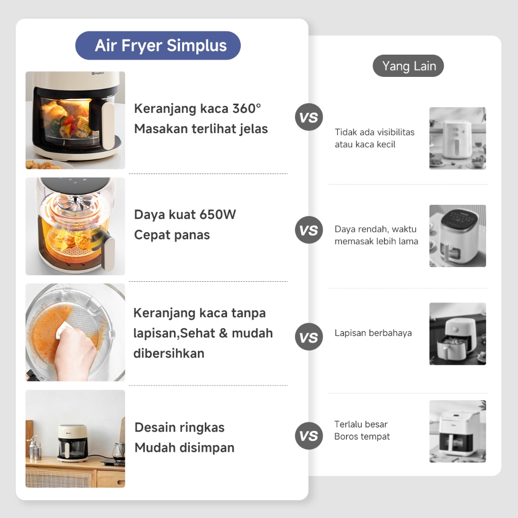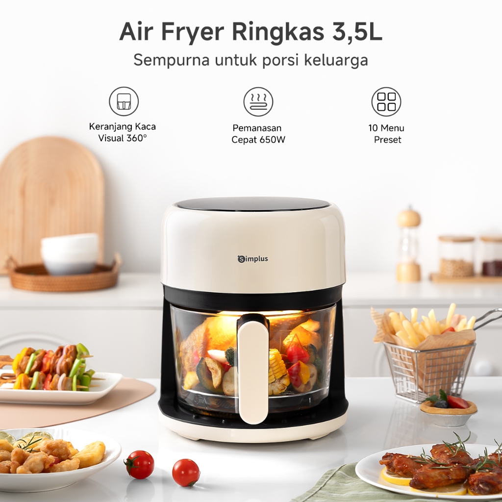 Simplus Air Fryer Penggorengan Udara Kapasitas 3,5L 360° Panoramic Window
