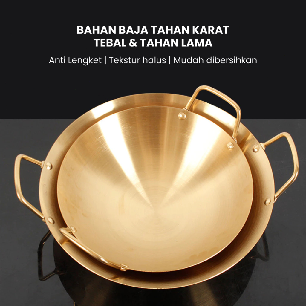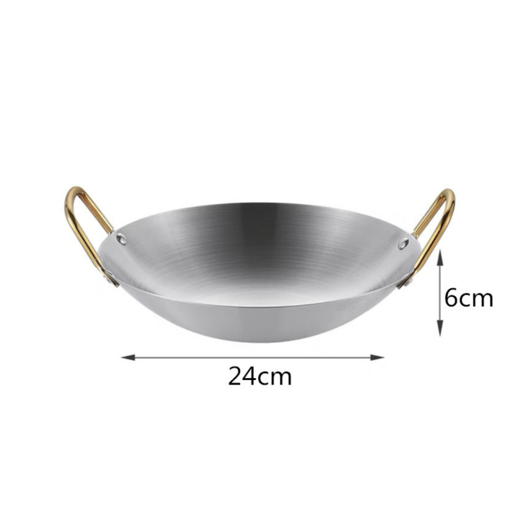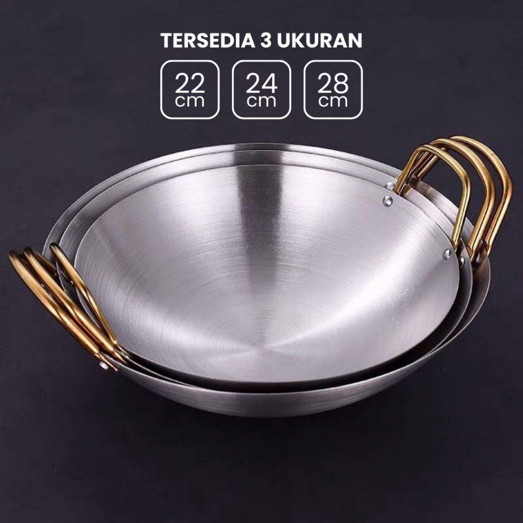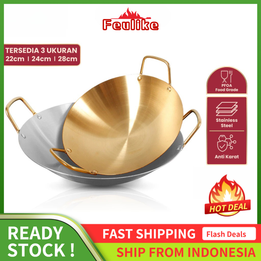 Feulike Wajan Warna Gold dan Silver Wajan Penggorengan Kuali Mini Stainless Steel Gagang Kuping 20 24 28 CM
