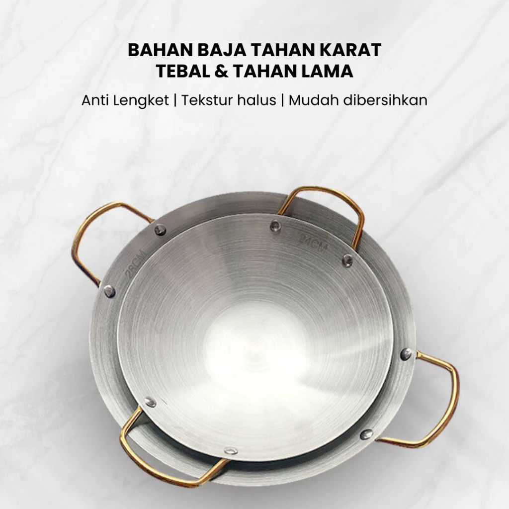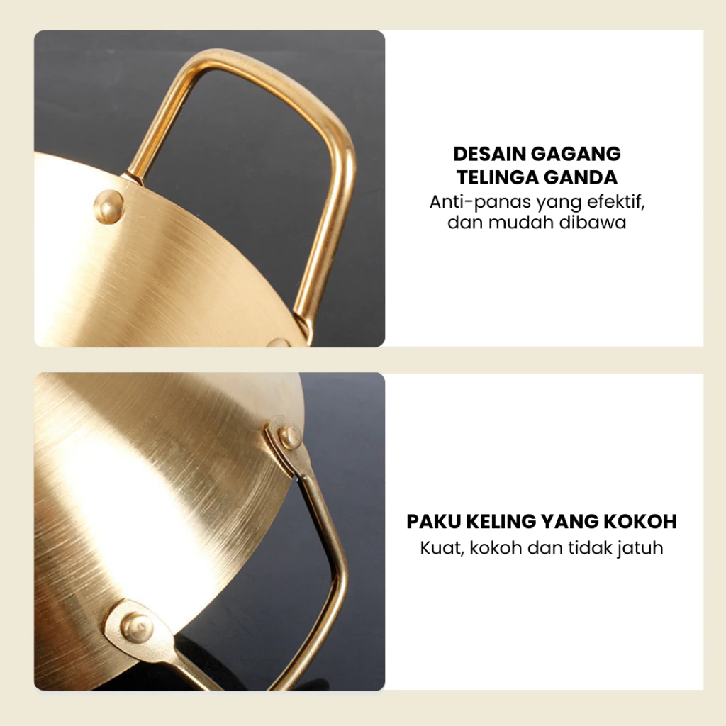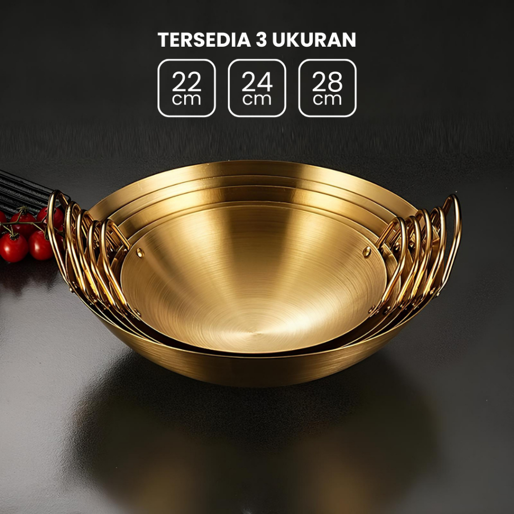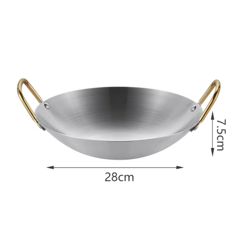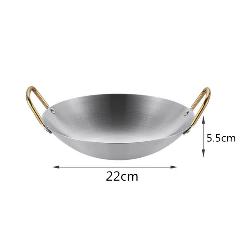 Feulike Wajan Warna Gold dan Silver Wajan Penggorengan Kuali Mini Stainless Steel Gagang Kuping 20 24 28 CM
