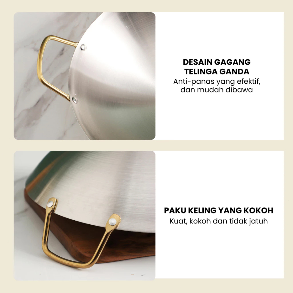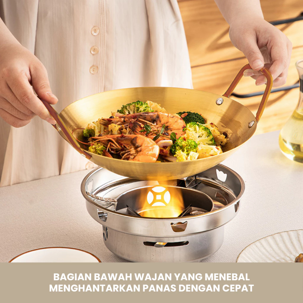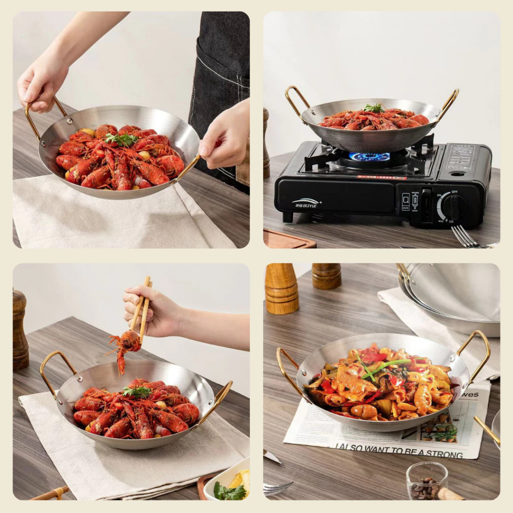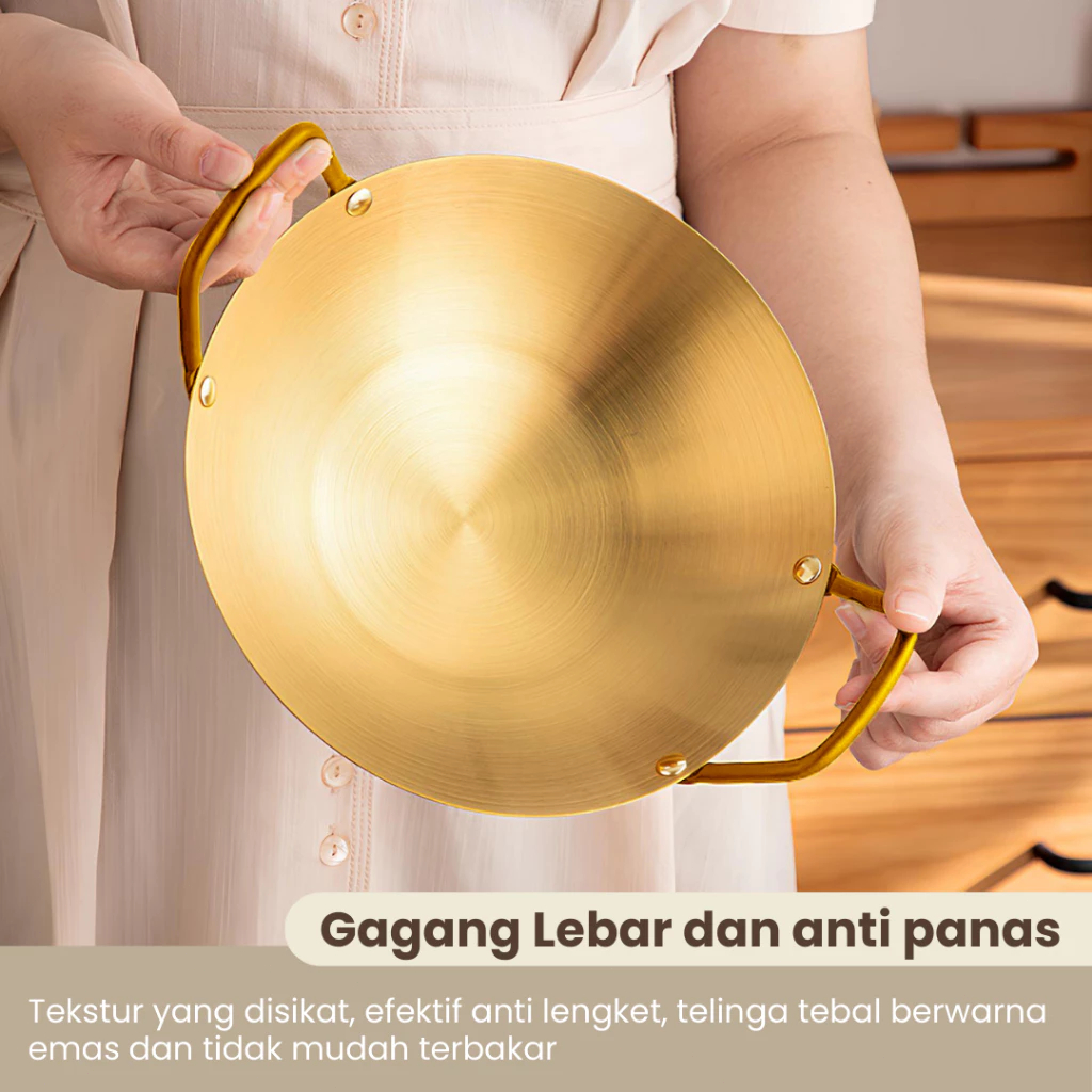 Feulike Wajan Warna Gold dan Silver Wajan Penggorengan Kuali Mini Stainless Steel Gagang Kuping 20 24 28 CM