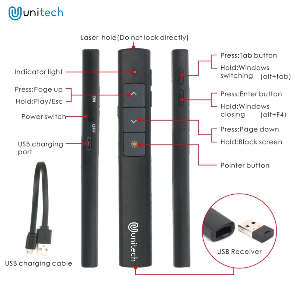 Unitech Wireless Laser Pointer Presenter Rechargeable 2.4G - Remote Control N26