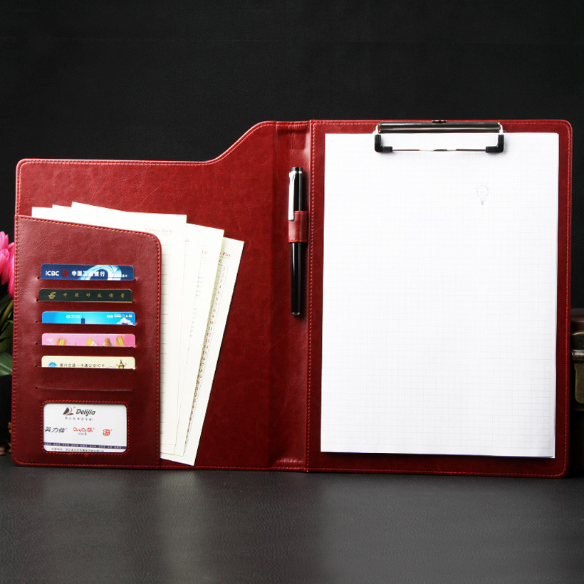 Universal A4 Leather Padfolio Portfolio Folder Metal Clamp Clipboard Business Executive File Folders Documents Holder Organizer