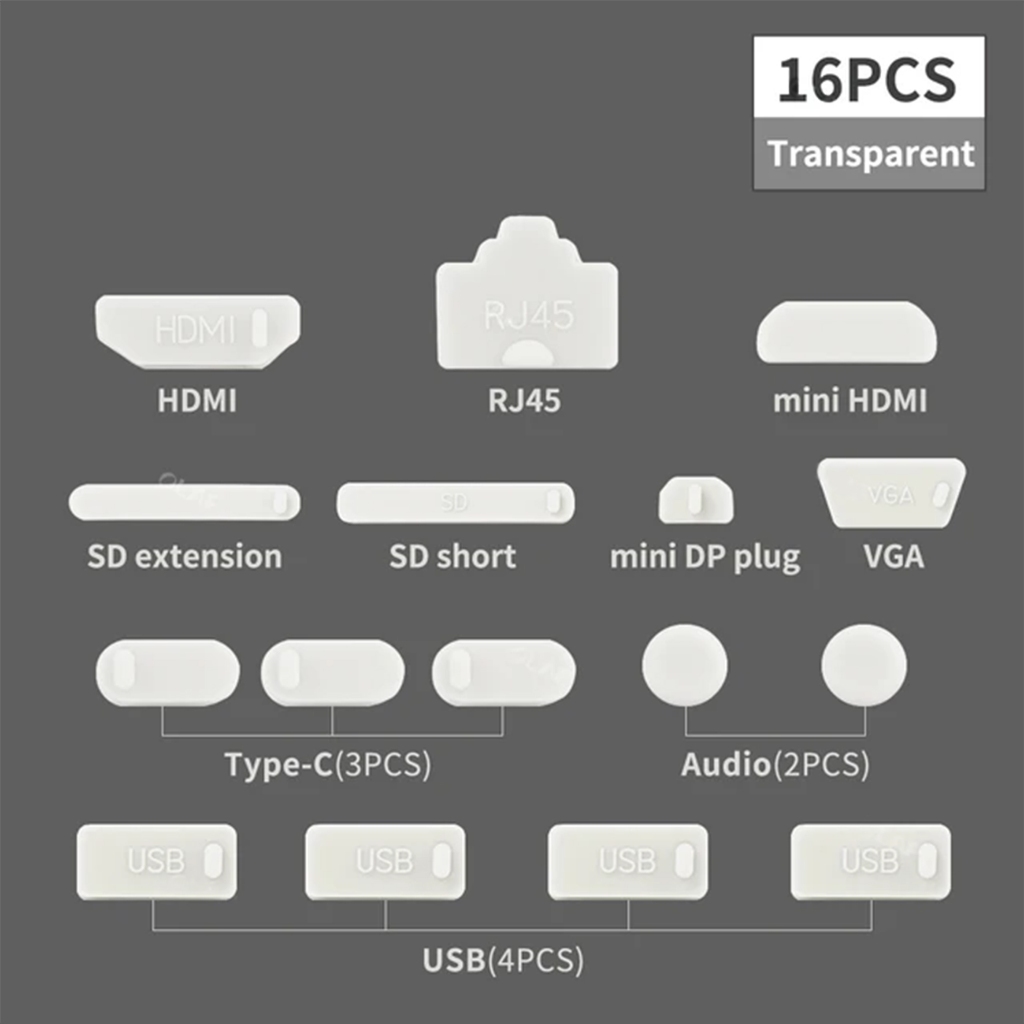 Universal Dust Plug Laptop Macbook Protector Cover Usb Vga Type C PD Port 16 pieces