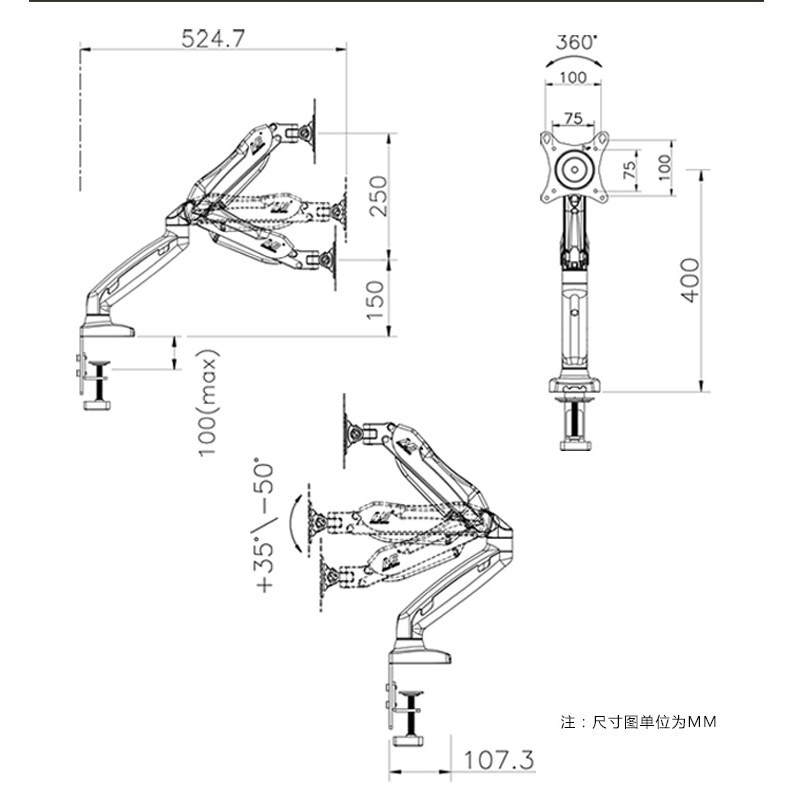 Universal Monitor Arm Bracket Vesa Desk Mount 2-9KG 17-30 Inch - NB-F80