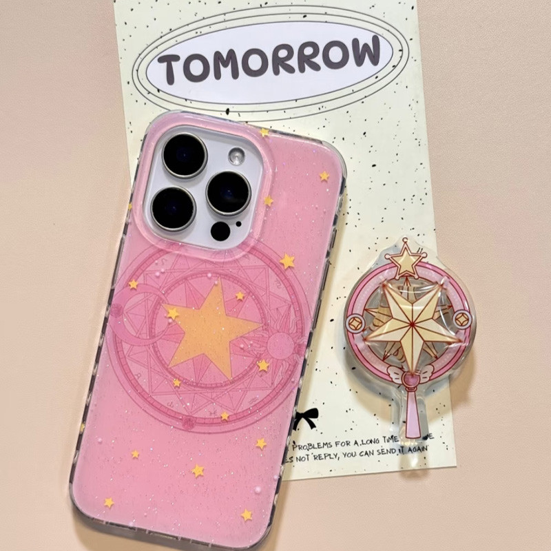Untuk Case iPhone SE2 Plus XS Max 7Plus 6 SE3 6s 12 13 X 11 14 8 XR XS 15 PlusProMax Pola Lucu Pentagram Konstelasi Merah Muda Casing