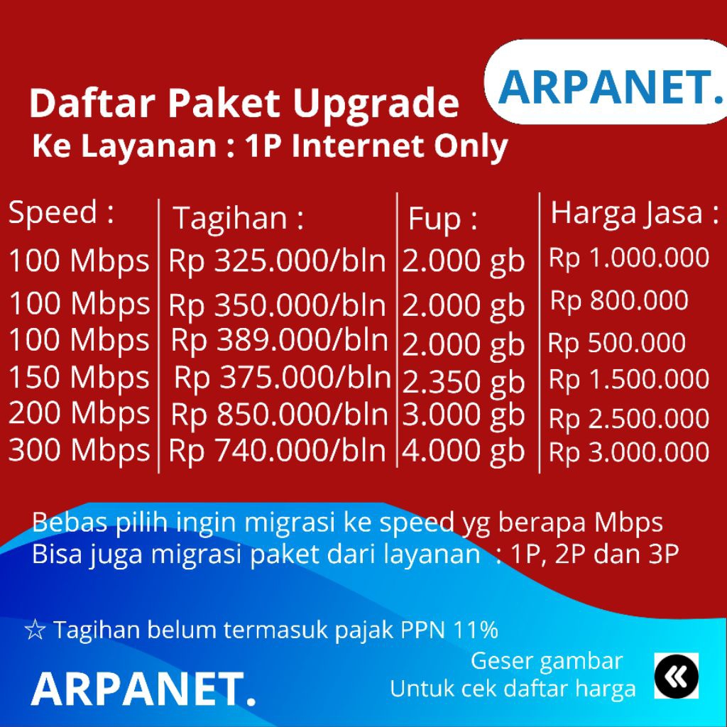 Upgrade Speed IndiHome | High Speed 100 - 300 Mbps | 1P Internet Only