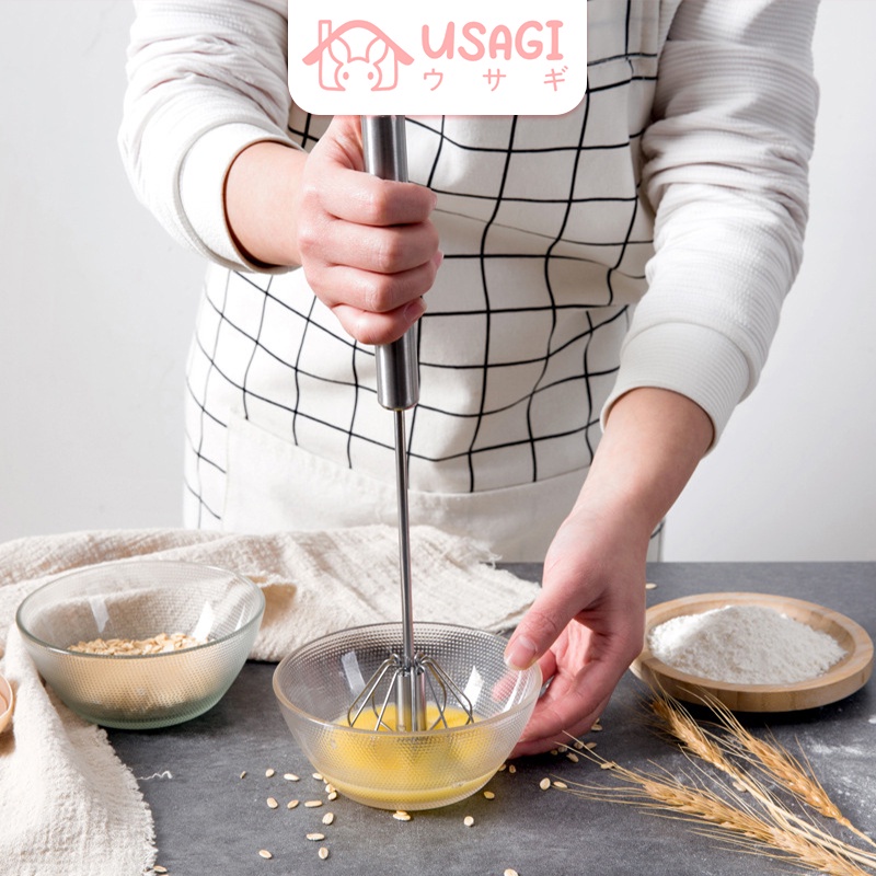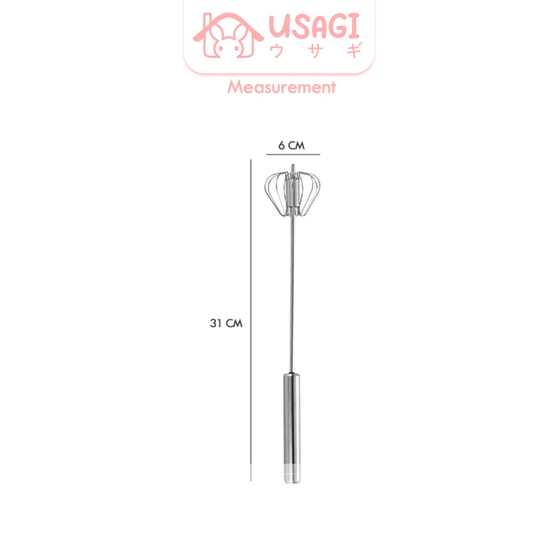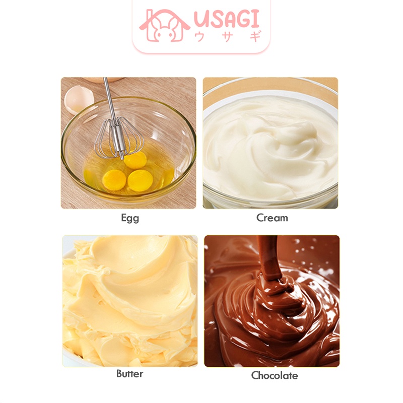 Usagi Official - Manual Egg Beater / Semi Otomatis Pengocok Telur Stainless Steel Egg Whisk Manual Hand Mixer Diri Memutar Telur Stirrer Alat Dapur Mixing Cream Chocolate Coklat Whipped Cream