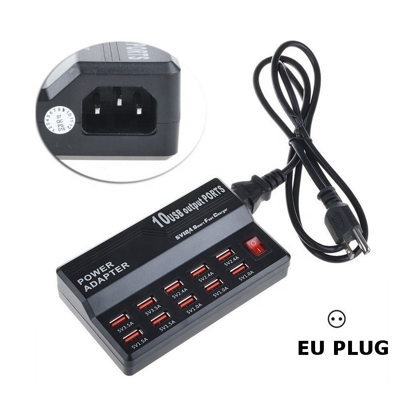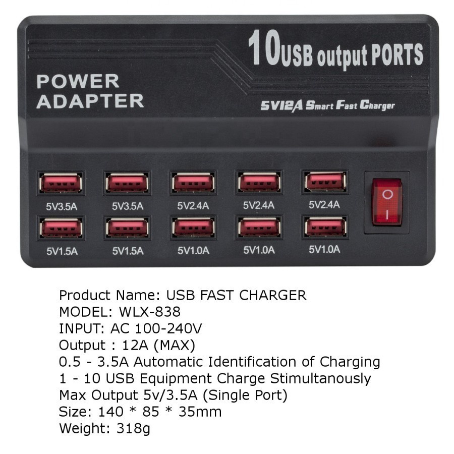 Usb Fast Charger 10 Port USB Power Adapter Max output 12A WLX-838 New
