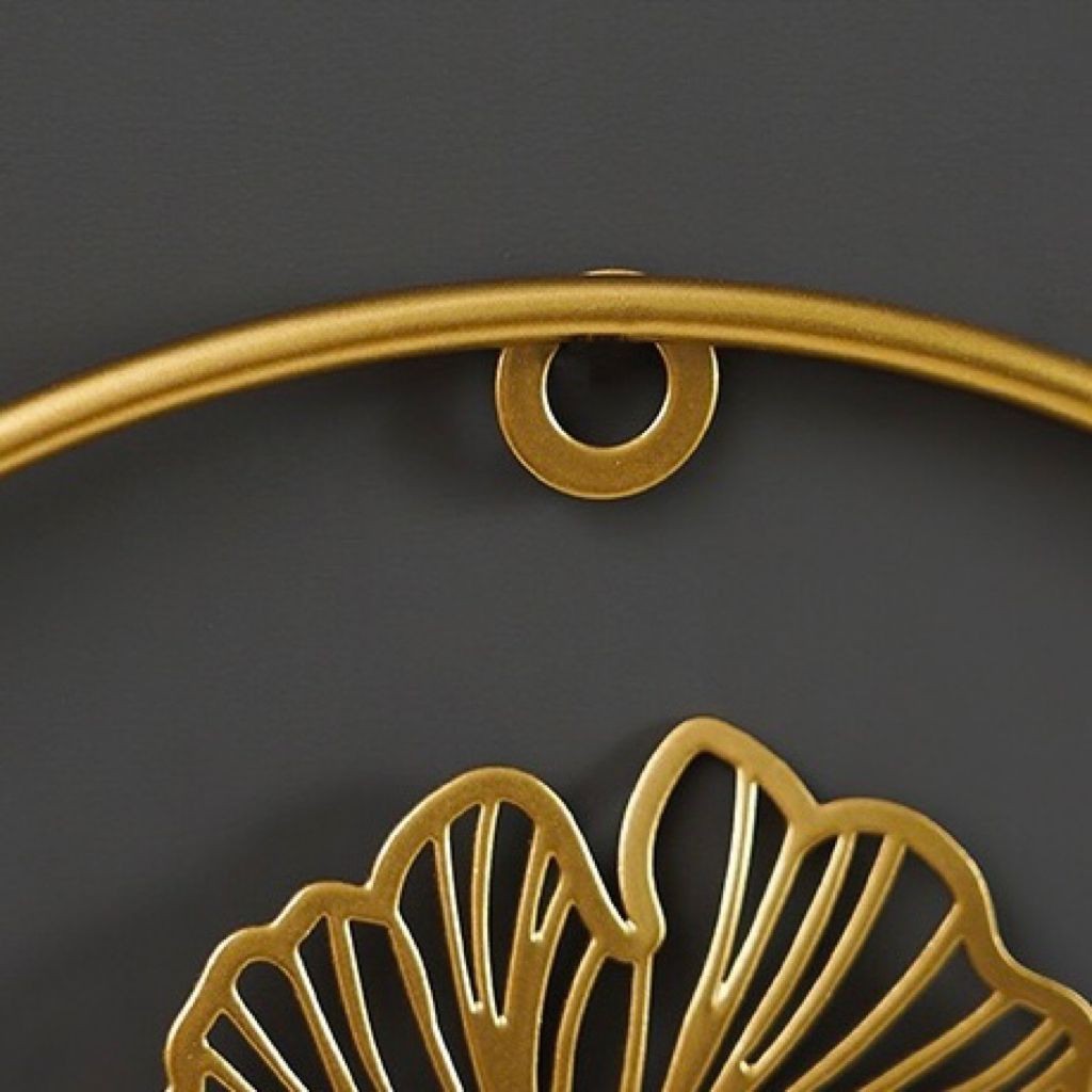 Utama Jakarta Baru - Hiasan Dinding Bulat Motif Daun Nordic /Hiasan Dinding Frame Metal Gold
