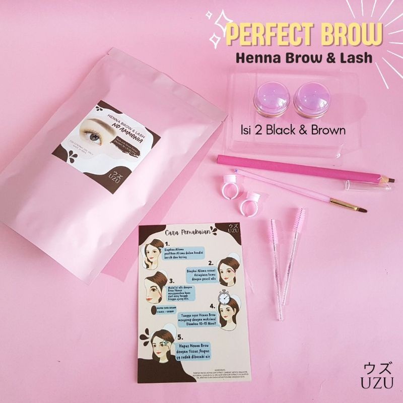 Uzu Henna Alis Set Brow Henna & Lash / Eyebrow Tint Tahan Lama Halal isi 10 gr